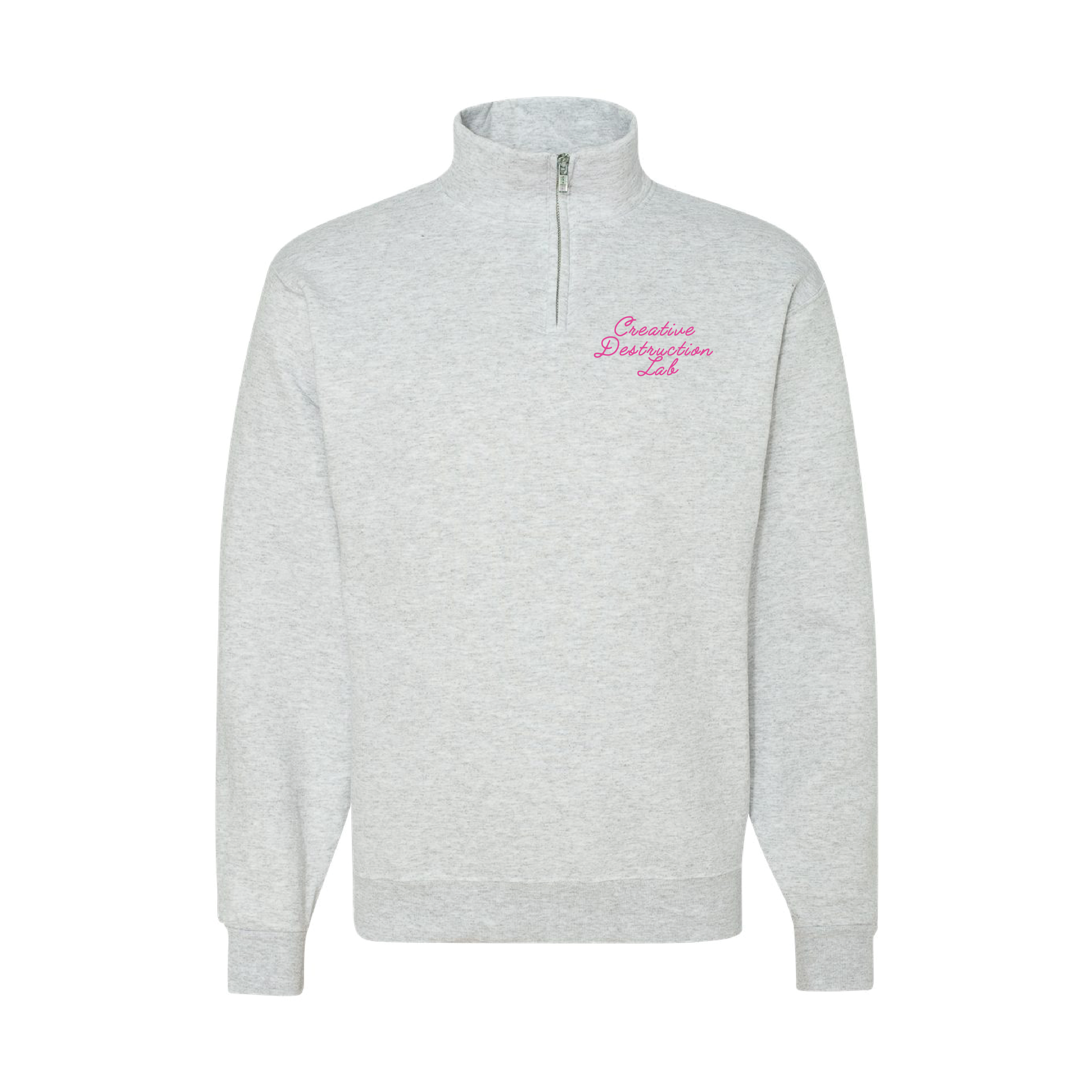 CDL's grey 1/4 zip for professionals, athletes, or professional athletes. Creative Destruction Lab embroidered right over your heart.